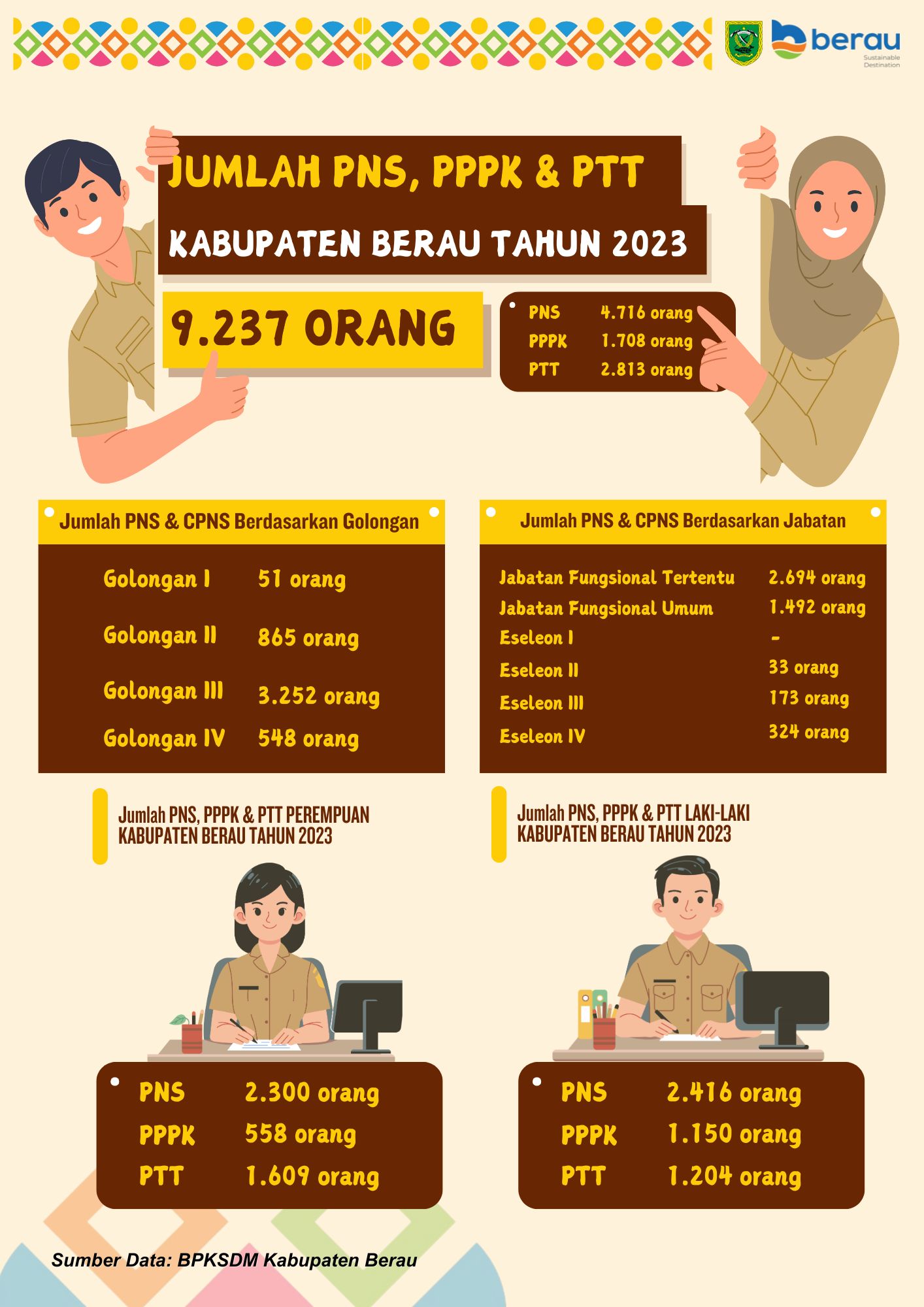 Jumlah PNS, PPPK dan PTT Kabupaten Berau Tahun 2023